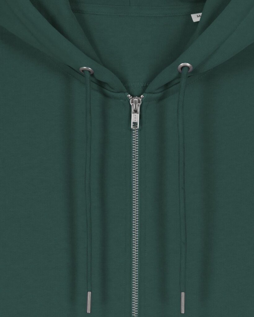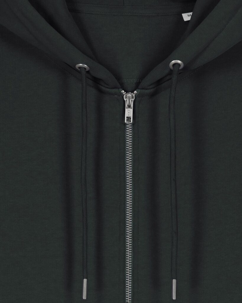 Exposed metal zip at centre front