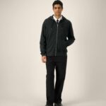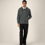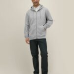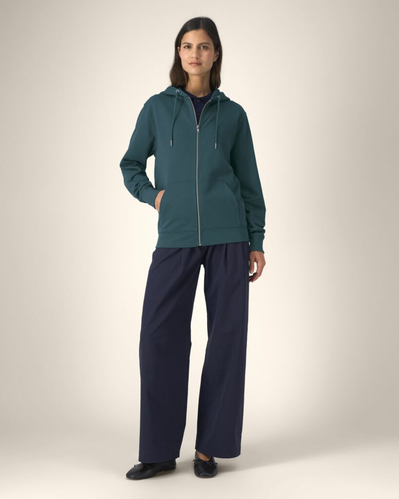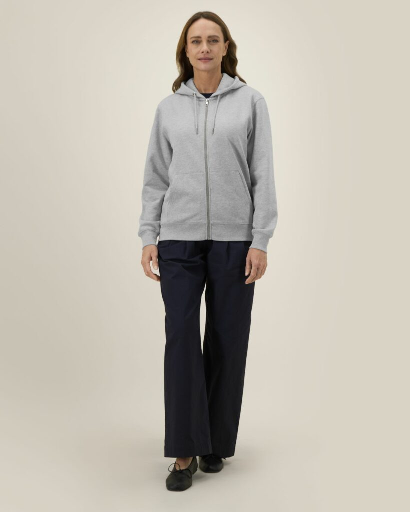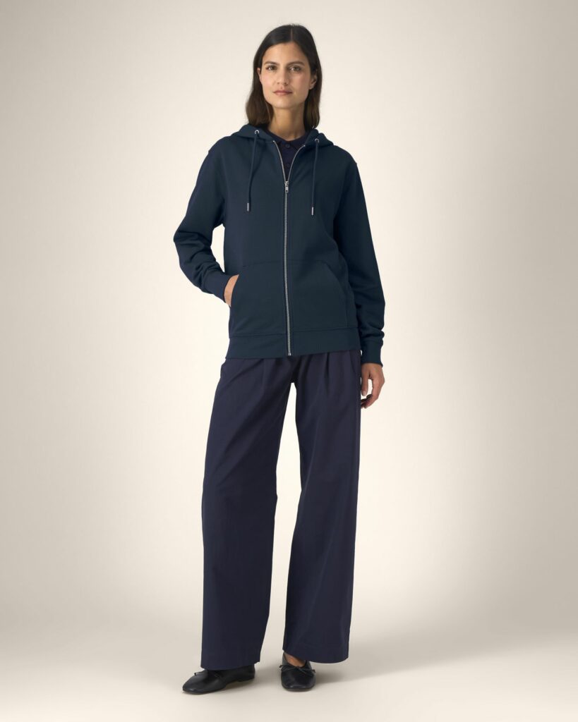 1×1 rib at sleeve cuffs and hem