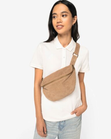 100% organic cotton. Corduroy fabric. Washed effect look. Bum bag with adjustable handle in the main material and tightening buckle in recycled metal. Zip opening made of reinforced metal. Garment dyed as a whole after assembly: colours may vary slightly between products. This product is likely to rub off in contact with light surfaces or garments.
