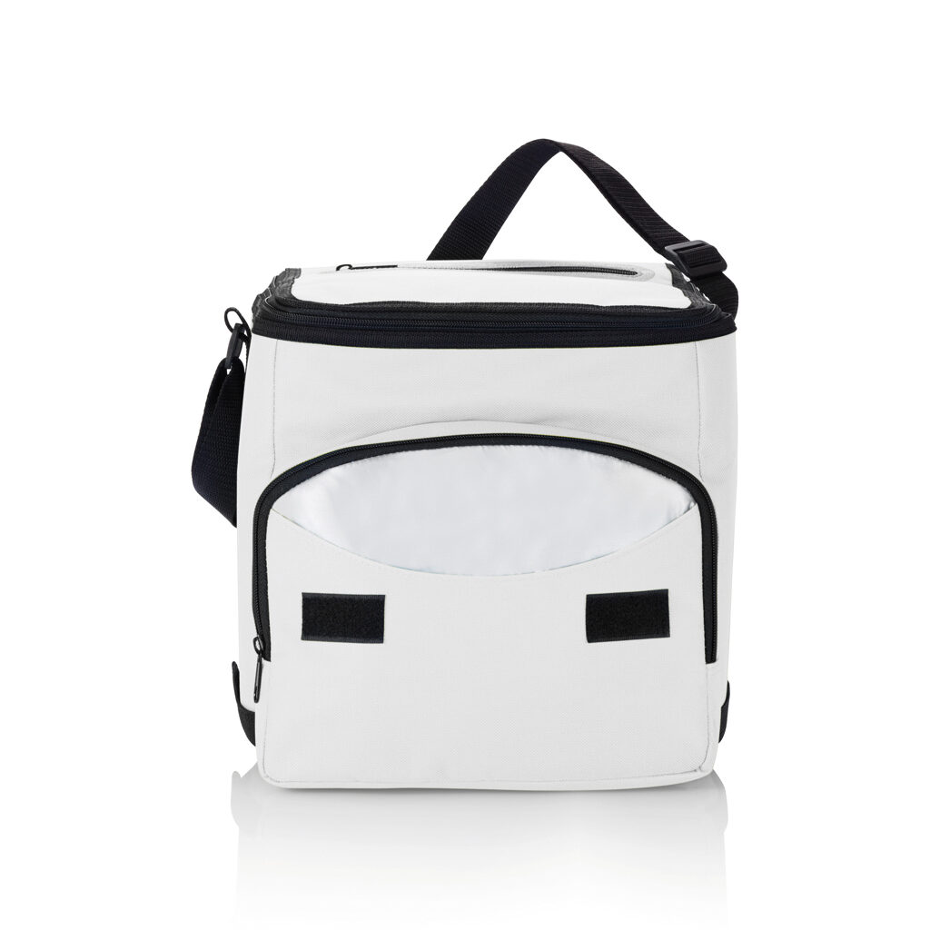 600D cooler bag with silver lined insulation inside to keep all your food and beverages cold. On the front there’s one additional pocket with printed colour detail around the zipper for storing your other belongings.