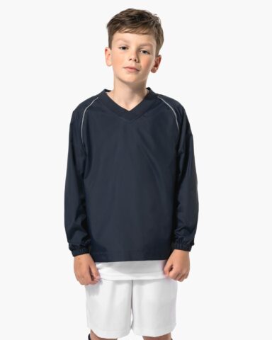 100% polyamide Oxford. PU backing. 1500 mm waterproof fabric. Heat-sealed seams on armholes. Raglan sleeves. V-neckline with 1×1 rib. Underarm ventilation eyelets. Contrast piping on armholes. Elasticated cuffs. Hem finish at bottom of garment. Detachable brand label.