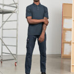 65% polyester/35% cotton. Knee backing. Multiple pockets. Mobile phone pocket. Machine washable at 60°.