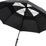 29.5” (75 cm) rib length golf umbrella. Manual opening with safety fastening. Fibreglass shaft and frame. Ribs with polypropylene tips. 210T polyester canopy with two-tone lined windproof panels on top. Ergonomic non-slip handle. Contrast zipped carry bag.