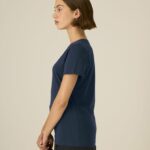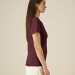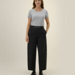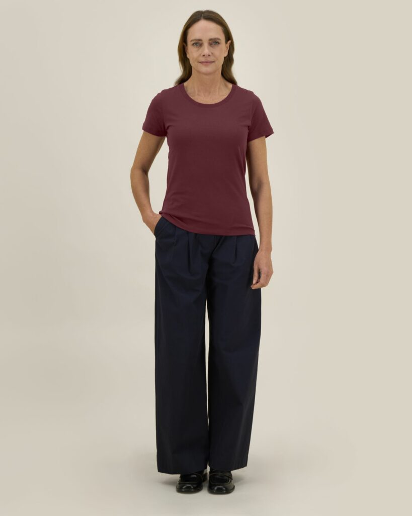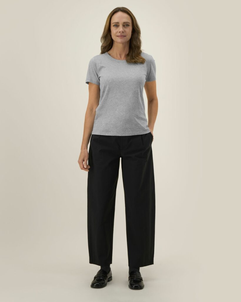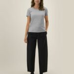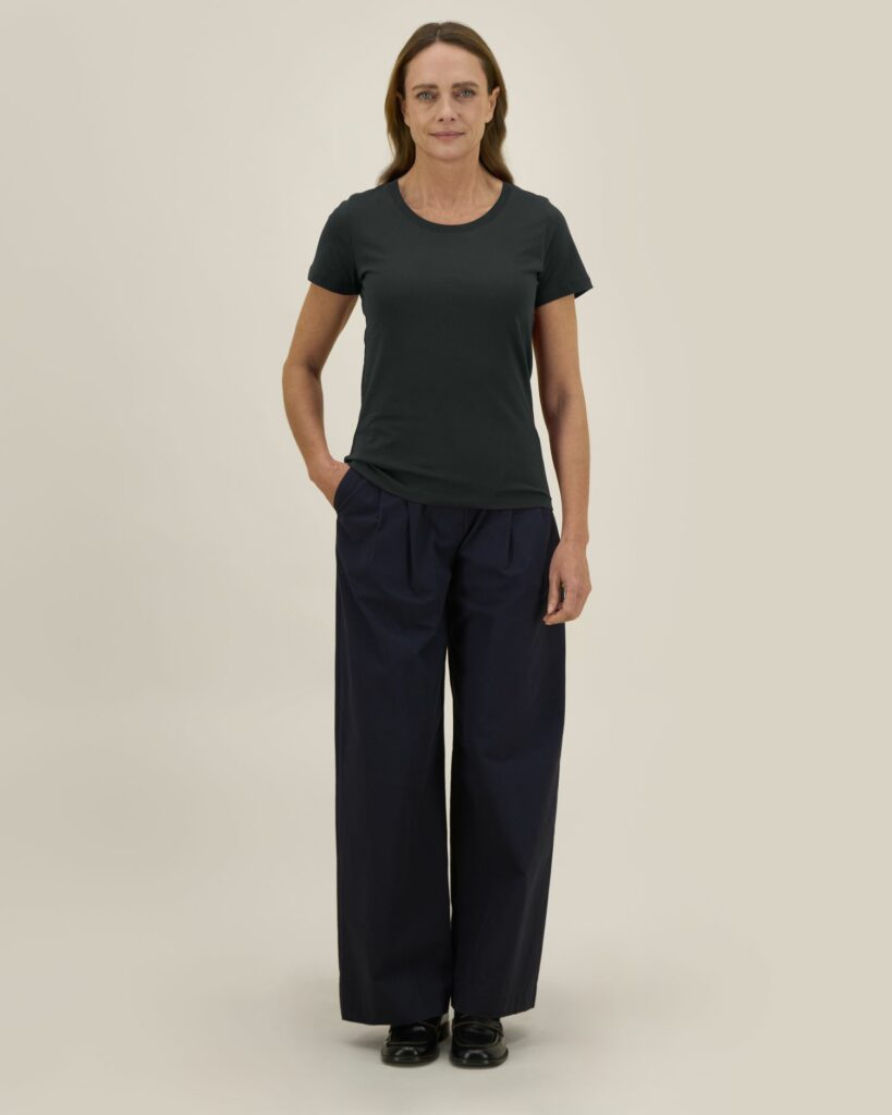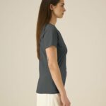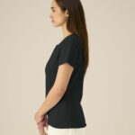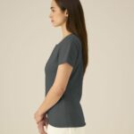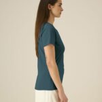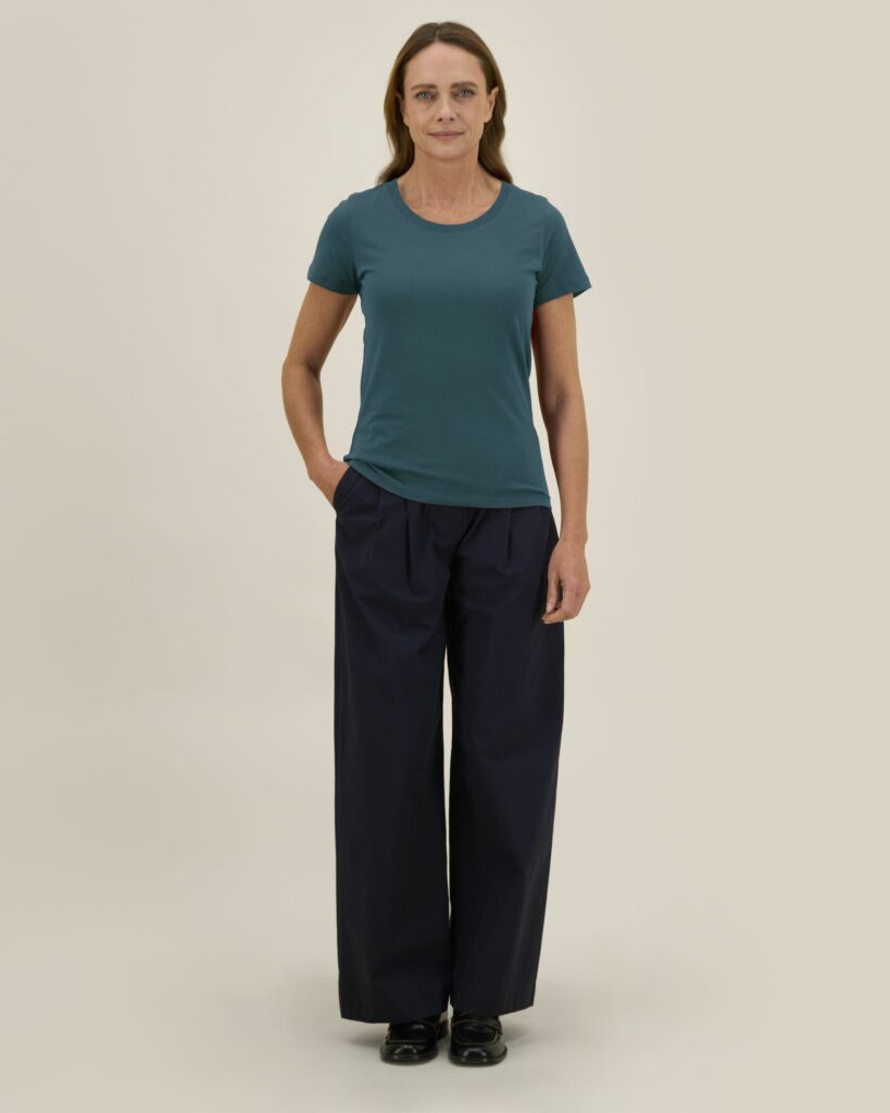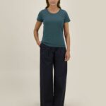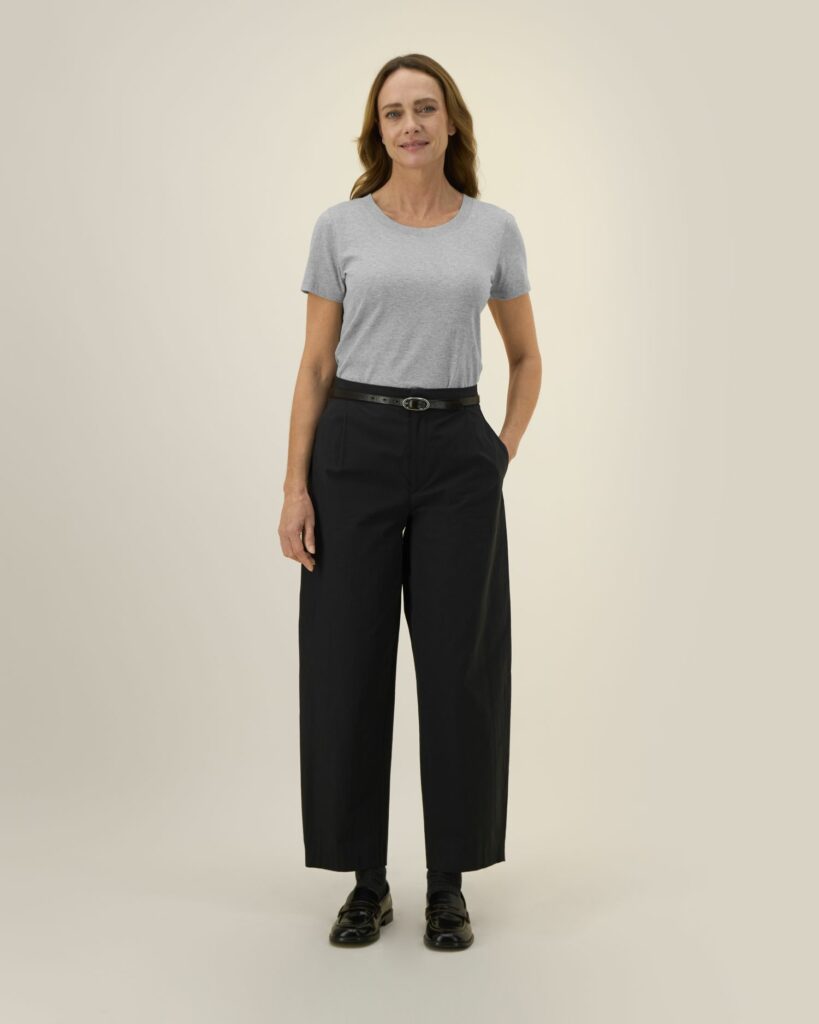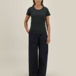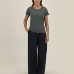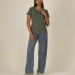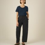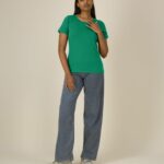 Narrow twin-needle topstitching at sleeve cuffs and hem