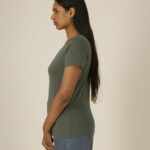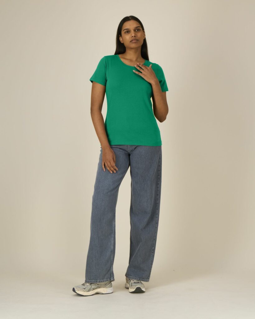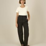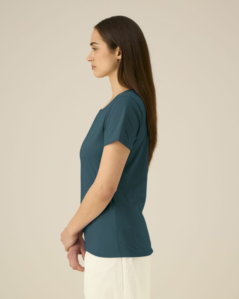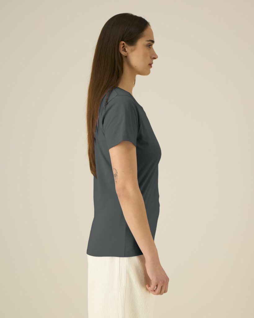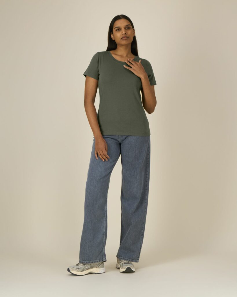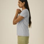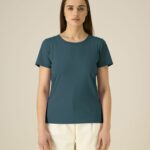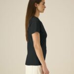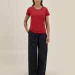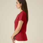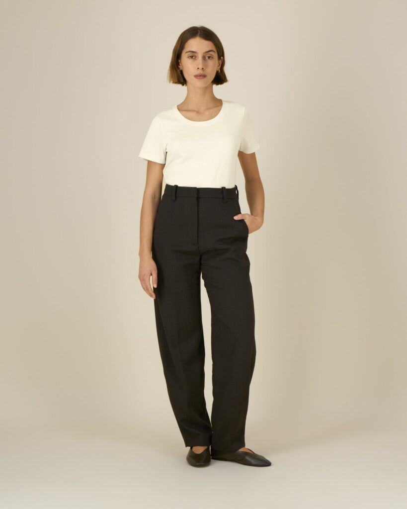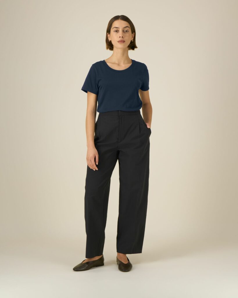 Narrow twin-needle topstitching at sleeve cuffs and hem