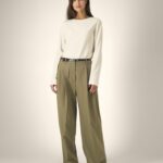 Narrow twin-needle topstitching at sleeve cuffs and hem