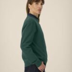 Twin-needle topstitching at shoulders, armholes, sleeve cuffs and hem
