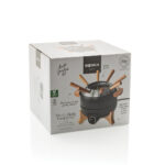 Service à fondue électrique Party, de la marque BOSKA, certifiée B Corporation, est la solution tout-en-un pour une soirée fondue inoubliable. D’une capacité allant jusqu’à 1,5 litre pour une fondue au fromage, au chocolat ou fondue chinoise (bouillon) et jusqu’à 1,2 litre pour une fondue bourguignonne, cet ensemble polyvalent vous permet de tout faire en toute simplicité. Grâce à un contrôle précis de la température et à un revêtement anti-adhésif en céramique sans PFAS ni PTFE, votre fondue reste parfaitement chaude et se nettoie en un clin d’œil. Compact et élégant, il est doté de poignées en bois et d’un cordon extra-long de 2 mètres (prise 230 V, type F) pour une configuration de table flexible. Idéal pour jusqu’à huit personnes et facile à ranger, le plaisir de la fondue n’aura jamais été aussi simple. Lavage à la main uniquement, cet ensemble est garanti à vie. Les composants électriques sont garantis 2 ans.