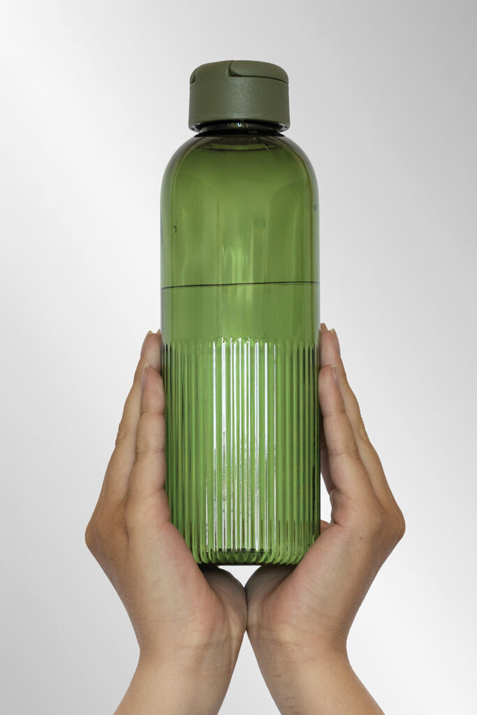Faites-vous remarquer avec la bouteille Ripple. Cette bouteille d’eau au design unique présente un effet ondulé à la base pour un look distinctif et une meilleure prise en main. Le couvercle à vis sécurisé est doté d’une poignée intégrée, ce qui permet de la transporter facilement où que vous alliez. Fabriquée à partir de 73 % rn rPET RCS, cette bouteille étanche de 750 ml est un choix élégant et durable pour l’hydratation quotidienne.