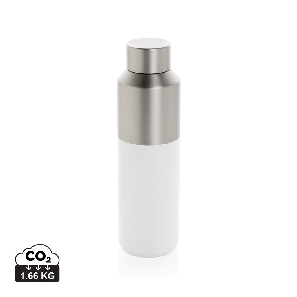Bouteille d’eau de 600 ml avec extérieur bicolore distinctif et design moitié-moitié stylé. La double paroi en acier inoxydable recyclé, fabriquée sous vide, permet de conserver les boissons fraîches jusqu’à 15 heures ou chaudes jusqu’à 5 heures. La bouteille d’eau s’adapte à la plupart des porte-gobelets standard des voitures, ce qui la rend parfaite pour une utilisation en déplacement. Fabriquée à partir de matériaux recyclés certifiés RCS (Recycled Claim Standard), garantissant une chaîne d’approvisionnement entièrement certifiée pour les matériaux recyclés. Sans BPA. Emballage cadeau en tube kraft certifié FSC®. Contenu recyclé total : 95 % sur la base du poids total de l’article.