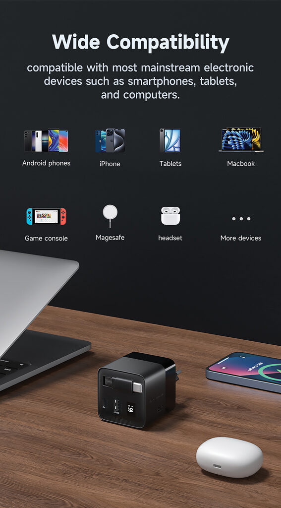 Découvrez le chargeur 65W avec un câble qui est toujours là quand vous en avez besoin. Mendocino est un chargeur PD GaN de 65 W doté d’un câble USB-C rétractable intégré de 80 cm – vous pouvez donc charger sans jamais chercher un câble séparé. Il est également livré avec des prises UE et UK interchangeables, ce qui en fait le compagnon de voyage idéal. GaN est une technologie de charge de nouvelle génération qui permet une taille plus compacte, moins de chaleur et une plus grande efficacité énergétique, et il peut alimenter jusqu’à trois appareils à la fois grâce à ses ports USB-C supplémentaires et à sa sortie USB-A.Mendocino est fabriqué avec du PC ignifugé recyclé certifié RCS (Recycled Claim Standard). Contenu recyclé total : 18 % sur la base du poids total de l’article. Les articles Urban Vitamin sont fabriqués sans PVC et emballés dans des emballages à teneur réduite en plastique.