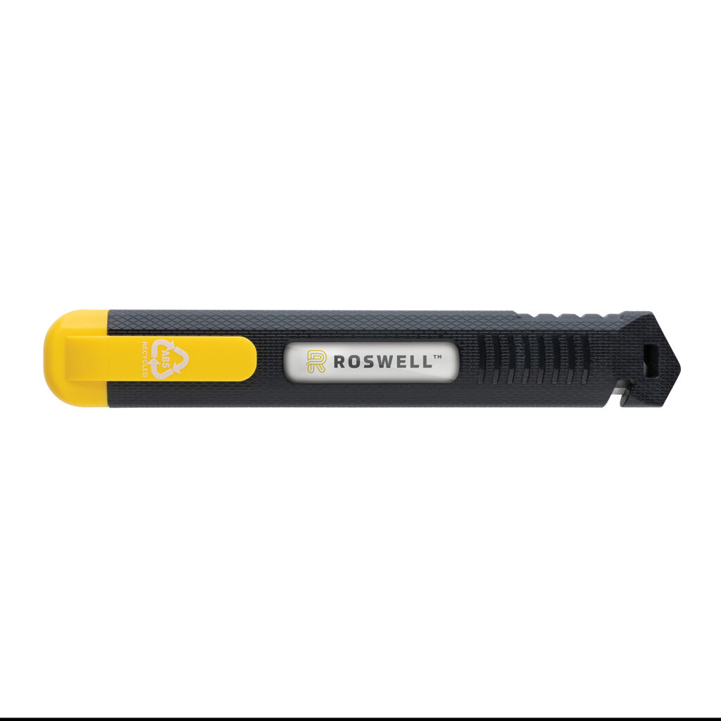 Cutter rechargeable en plastique recyclé certifié RCS (Recycled Claim Standard), composé d’ABS recyclé certifié RCS et d’une lame en acier inoxydable. Contenu recyclé total : 78% sur la base du poids total de l’article. La certification RCS garantit une chaîne d’approvisionnement entièrement certifiée pour les matériaux recyclés. Ce couteau polyvalent est doté d’une lame amovible, ce qui vous permet de remplacer facilement la lame SK4. Que vous ayez besoin de couper du carton, du plastique ou même de fines feuilles de métal, le couteau à déclic est à la hauteur de la tâche. La lame tranchante et durable garantit des coupes nettes et précises à chaque fois. La poignée confortable offre une bonne prise en main, ce qui vous permet de garder un contrôle total pendant que vous coupez. De plus, sa légèreté permet de l’emporter partout avec soi. Emballage en kraft FSC® mix.