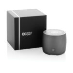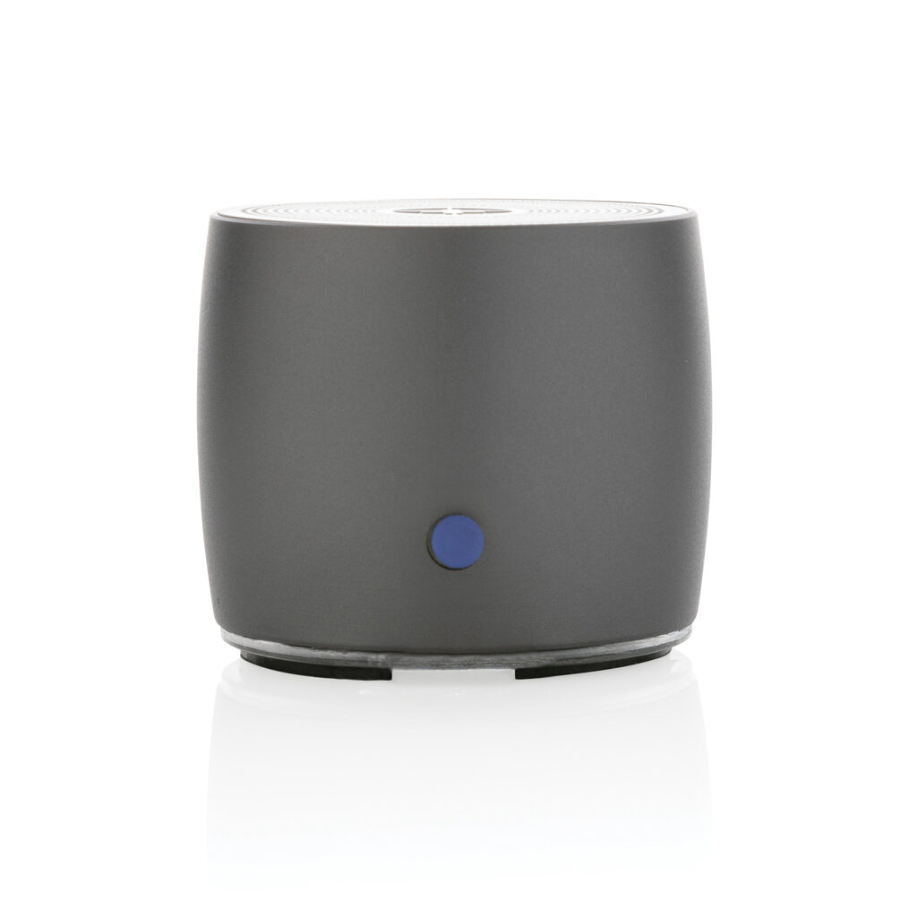 Haut-parleur sans fil 3W petit mais puissant fabriqué avec de l’aluminium recyclé certifié RCS (Recycled Claim Standard) et de l’ABS recyclé. Contenu recyclé total : 28 % basé sur le poids total de l’article. La certification RCS garantit une chaîne d’approvisionnement entièrement certifiée des matériaux recyclés. L’aluminium ne perd pas ses caractéristiques lors du processus de recyclage et peut être recyclé à l’infini. Câble de charge recyclé de type C fabriqué à partir de TPE recyclé certifié RCS inclus. Livré dans un emballage FSC® mix. La batterie de 500 mAh permet une autonomie allant jusqu’à 4 heures et peut être entièrement rechargée en 2 heures. Avec BT 5.0 pour une connexion fluide jusqu’à 10 mètres. Article et accessoires sans PVC.