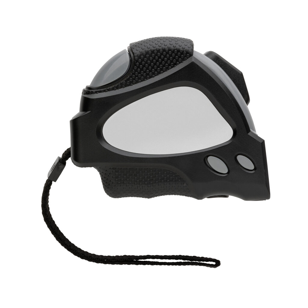 Mètre ruban autobloquant 8M robuste, fabriqué en plastique ABS recyclé certifié RCS (Recycled Claim Standard). Contenu recyclé total: 11% basé sur le poids total de l’article. RCS est une norme permettant de vérifier le contenu recyclé d’ un produit tout au long de la chaîne d’approvisionnement. Avec une poignée en TRP/caoutchouc pour une bonne prise en main, bouton de déverrouillage en haut et en bas à utiliser selon vos préférences, ruban jaune de 16 mm avec une impression sur 1 côté, crochet noir en acier, 2 aimants intégrés, dragonne en polyester. Emballé dans une boîte kraft certifiée FSC® mix.