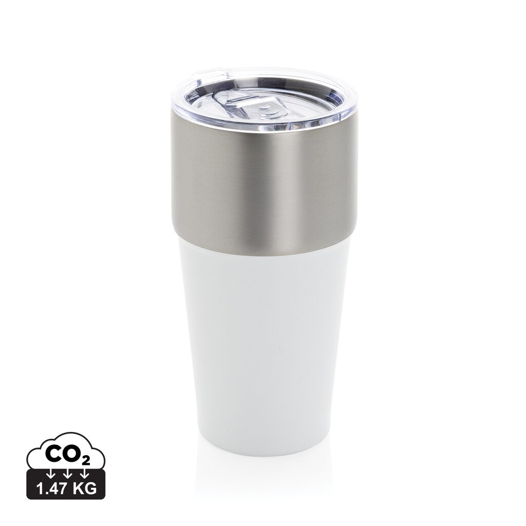 Ce Mug 500 ml présente un extérieur bicolore distinctif avec un design moitié-moitié élégant. La double paroi en acier inoxydable recyclé, fabriquée sous vide, permet de conserver les boissons fraîches jusqu’à 15 heures ou chaudes jusqu’à 5 heures. Le gobelet Fluid s’adapte à la plupart des porte-gobelets standard des voitures, ce qui le rend parfait pour une utilisation nomade. Fabriqué à partir de matériaux recyclés certifiés RCS (Recycled Claim Standard), garantissant une chaîne d’approvisionnement entièrement certifiée pour les matériaux recyclés. Sans BPA. Emballage cadeau en tube kraft certifié FSC®. Contenu recyclé total : 81% sur la base du poids total de l’article.
