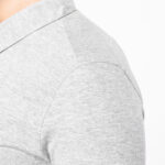 100% coton peigné (French Navy Heather : 80% coton / 20% polyester – Grey Heather : 65% polyester / 35% coton- Oxford Grey : 90% coton / 10% viscose). Maille jersey. Col chemise. Patte de boutonnage col 4 boutons métal. Empiècement épaule. Finition bord-côte au bas de manches. Double aiguille bas de vêtement.