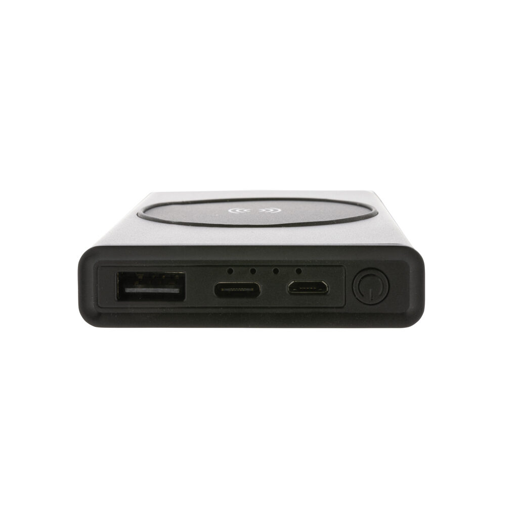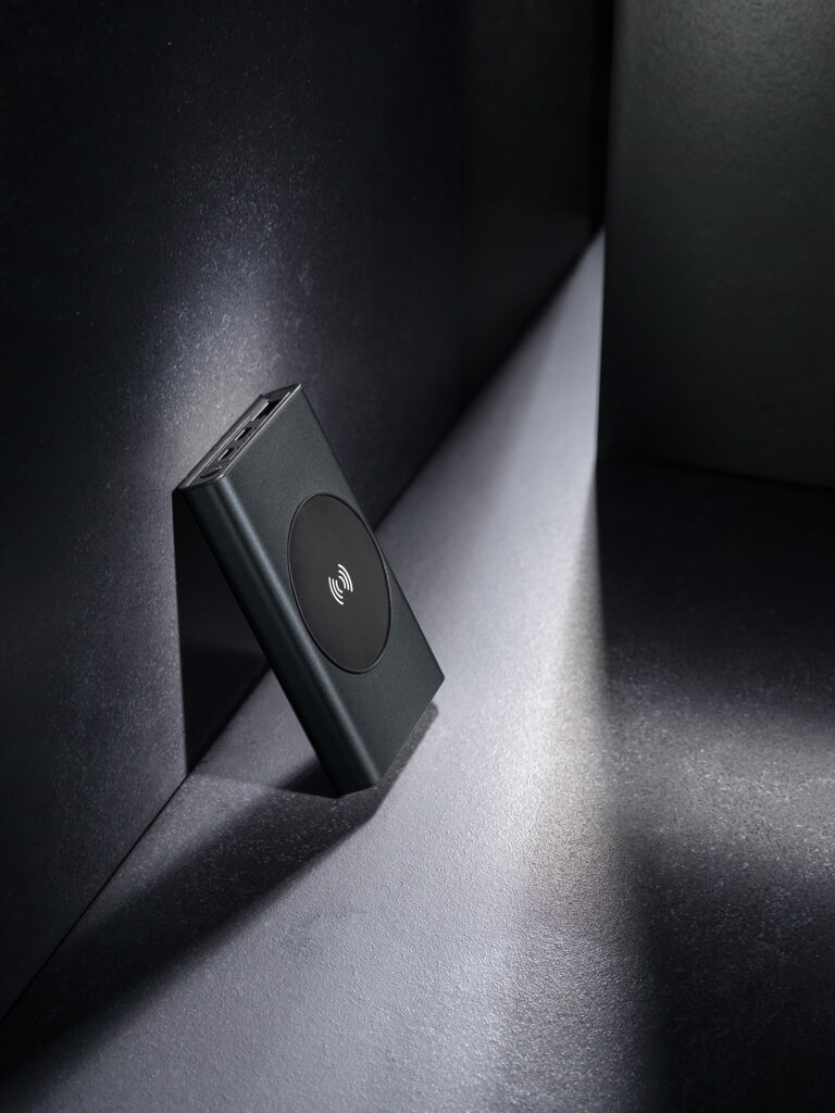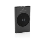Batterie de secours fabriqué à partir d’aluminium recyclé et d’ABS certifiés RCS (Recycled Claim Standard). Contenu recyclé total : 31 % sur la base du poids total de l’article. La certification RCS garantit une chaîne d’approvisionnement entièrement certifiée pour les matériaux recyclés. L’aluminium ne perd pas ses caractéristiques dans le processus de recyclage et peut être recyclé à l’infini. Le powerbank contient une batterie au lithium-polymère de qualité A 5000 mAh longue durée. Le chargeur sans fil prend en charge la recharge sans fil jusqu’à 5W. Les indicateurs de puissance indiquent le niveau d’énergie restant, ce qui vous permet de toujours savoir quand recharger. Article et accessoires 100% sans PVC. Câble de chargement de type C inclus, fabriqué à partir d’aluminium recyclé certifié RCS, de TPE et de PET. Emballé dans un emballage FSC® mix. Sortie USB 5/2.4A, sortie Type C : 5V/2.4A. Entrée Type C : 2,4A. Entrée Micro USB : 5V/2A.