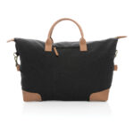 Sac weekend en toile composé de 60% coton recyclé et 40% polyester recyclé avec doublure en polyester recyclé 150D. Avec un compartiment spacieux, poche avant et poignées PU. Le dessous du sac comporte 4 clous en laiton pour garder votre sac propre lorsqu’il est sur le sol. Le traceur AWARE™ qui prouve l’utilisation authentique de la toile recyclée. 2% de chaque vente de produit Impact vendu sera versée en don à Water.org.