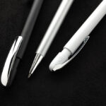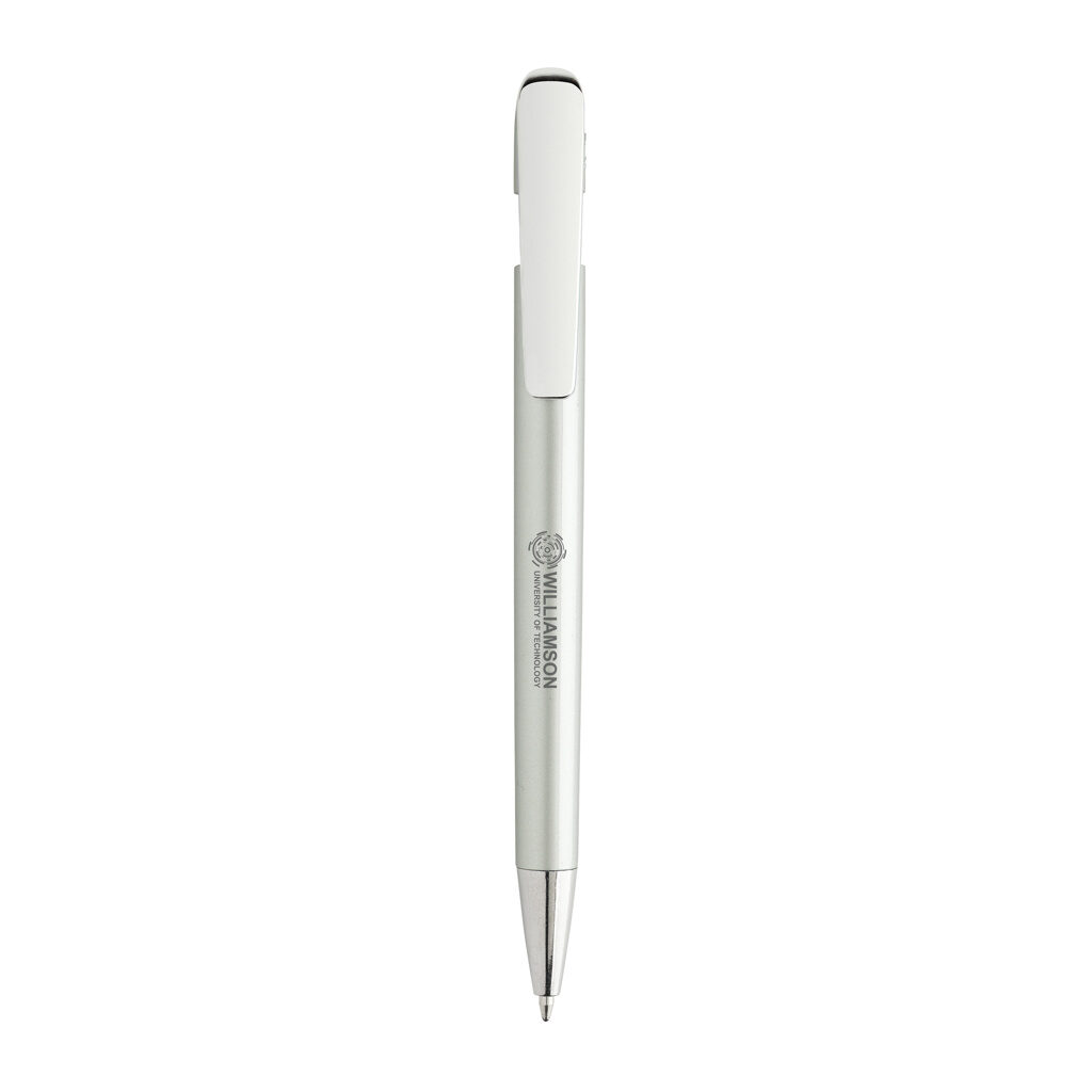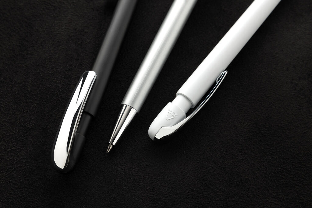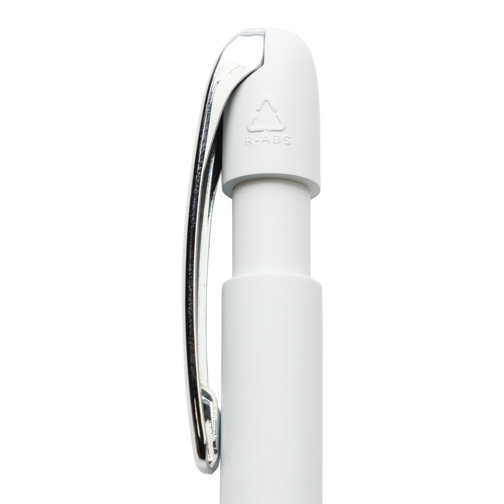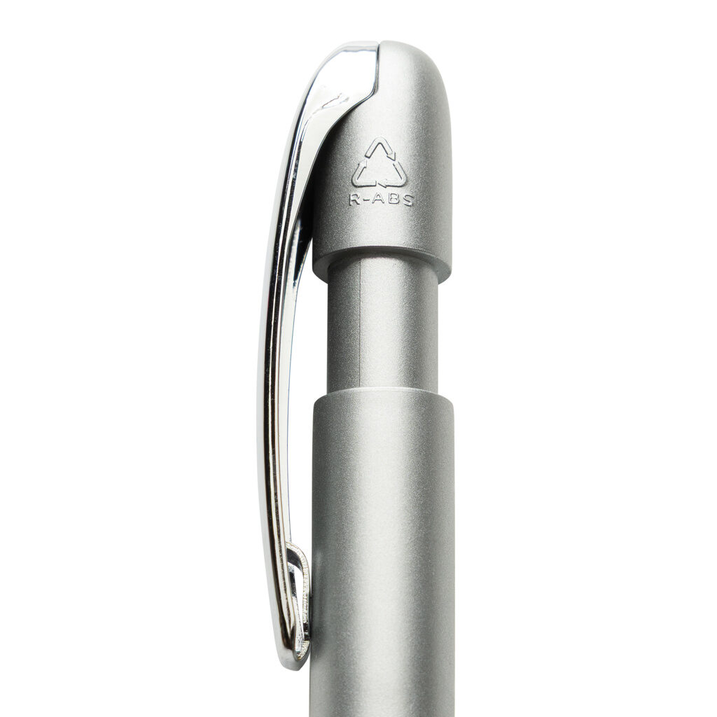 Stylo à bille avec un superbe clip en métal chromé. Longueur d’écriture d’environ 1200 m. Recharge d’encre bleue allemande Dokumental® avec bille TC pour une écriture ultra douce. Fabriqué avec 55% d’ABS recyclé Certifié RCS.