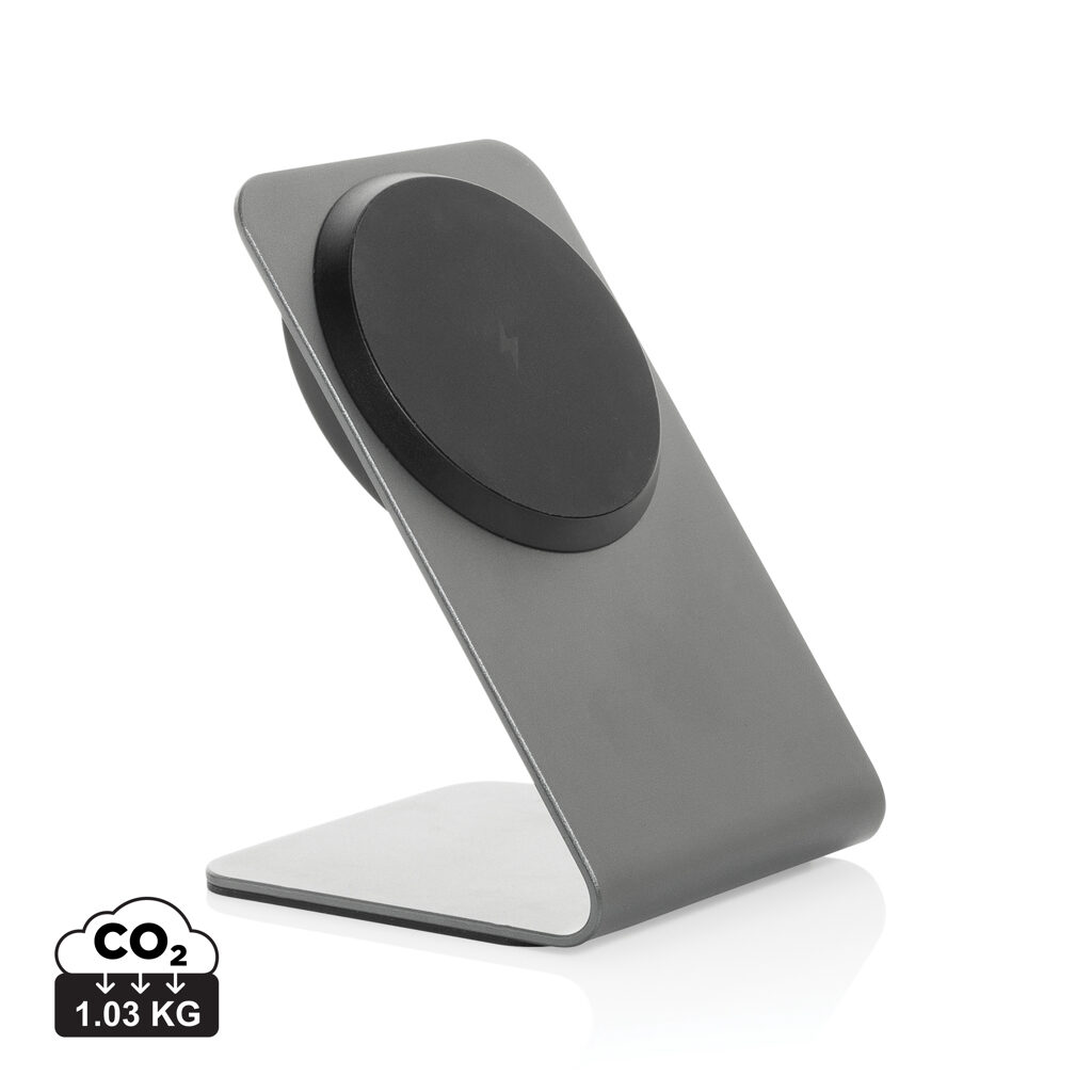Le support en aluminium de recharge magnétique 15W en Terra redéfinit la sophistication et la performance. Offrant une puissance de 15 W, son système magnétique avancé permet de maintenir votre appareil en toute sécurité. Grâce à ses 15 aimants de précision, il garantit un alignement parfait pour un chargement efficace, que ce soit à l’horizontale ou à la verticale. Fabriqué en aluminium recyclé certifié RCS et AVS, le support Terra allie un design raffiné à un faible impact. La norme RCS (Recycled Claim Standard) vérifie le contenu recyclé tout au long de la chaîne d’approvisionnement. Fabriqué avec 68% de contenu recyclé par rapport au poids de l’article. Entièrement dépourvu de PVC, il est emballé dans une boîte en kraft certifiée FSC, ce qui renforce son approche à faible impact. Le support comprend un câble USB-C à USB-C de 120 cm, fabriqué à partir de TPE recyclé certifié RCS. Entrée USB-C : 9V/2,22A.
