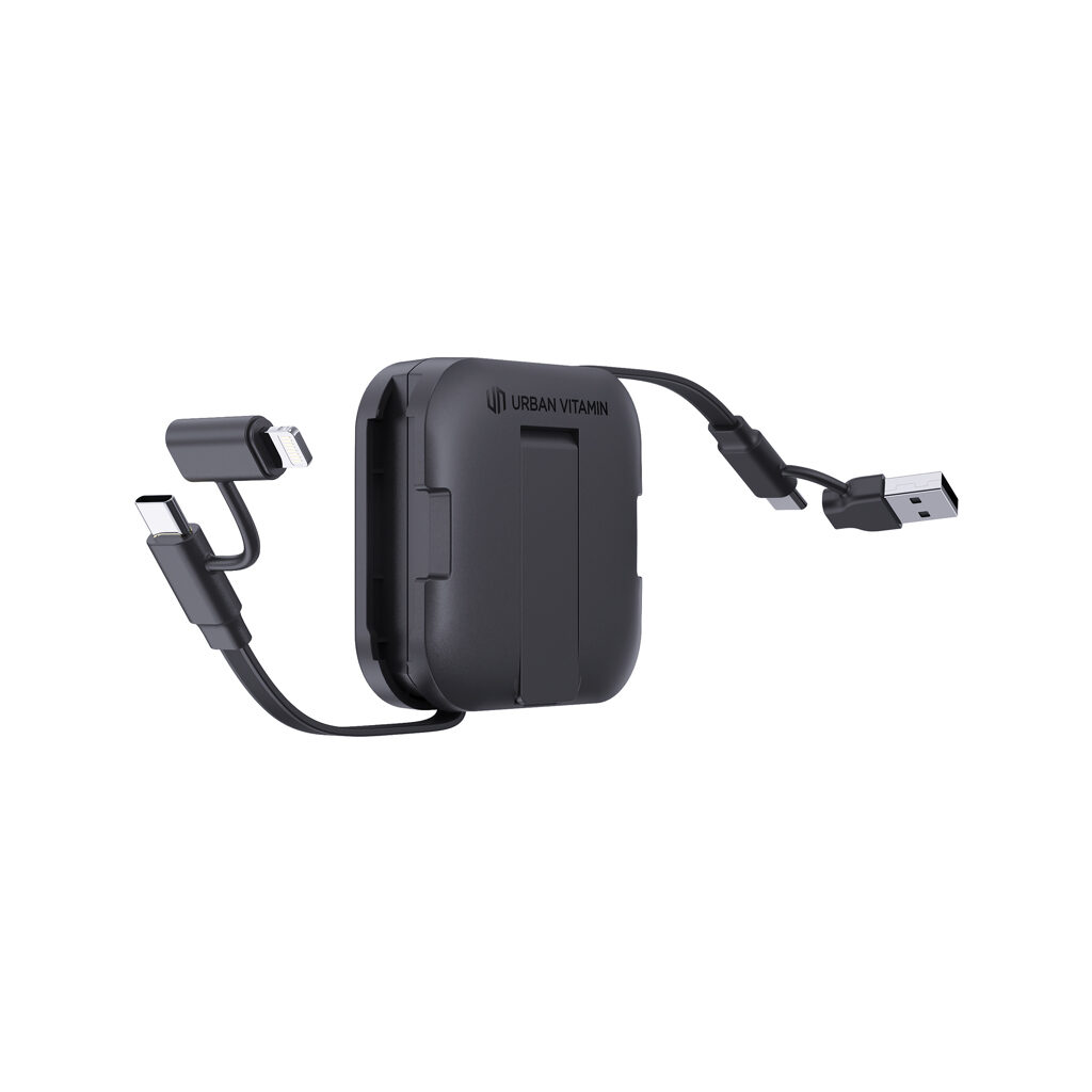 San Jose est un support de téléphone 100 W avec câble de charge rétractable intégré. Grâce à son support magnétique et à sa béquille, San Jose maintient votre téléphone en toute sécurité et à l’angle idéal pour une utilisation mains libres. Le câble rétractable s’étend jusqu’à 100 cm et offre une charge ultra-rapide, prenant en charge jusqu’à 100 W de puissance avec le câble USB-C vers USB-C. Il est également équipé de connecteurs USB-A vers USB-C et USB-A vers iOS, ce qui le rend suffisamment polyvalent pour recharger une large gamme d’appareils. De plus, il prend en charge le transfert de données pour une synchronisation fluide des fichiers pendant la charge. San Jose est fabriqué à partir de matériaux ABS et TPE recyclé certifiés RCS (Recycled Claim Standard). Contenu recyclé total : 59 % du poids de l’article. Les articles Urban Vitamin sont fabriqués sans PVC et conditionnés dans des emballages à faible teneur en plastique.