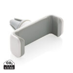 Support pour voiture universel et rotatif à 360 degrés en ABS recyclé certifié RCS (Recycled Claim Standard). Contenu recyclé total : 37 % basé sur le poids total de l’article. La certification RCS garantit une chaîne d’approvisionnement entièrement certifiée des matériaux recyclés. Cliquez l’article sur votre bouche d’aération et placez votre téléphone portable (jusqu’à 6.2 pouces) dans le support. Fabriqué à partir d’ABS recyclé résistant à la chaleur et de silicone solide pour rendre l’article durable et éviter qu’il ne tombe de votre grille d’aération pendant la conduite. Avec mécanisme en acier inoxydable à l’intérieur pour garantir que votre téléphone reste en place.