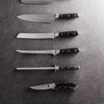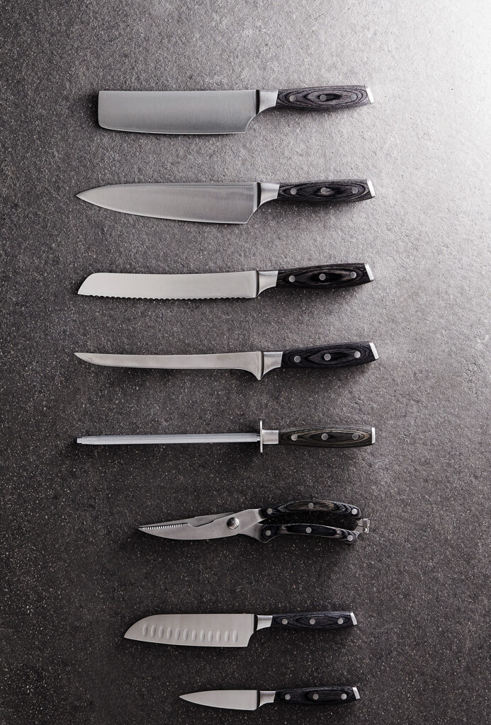 Couteau de chef en acier allemand X50CrMoV15 avec un manche en pakkawood. Le manche facile à saisir et le superbe équilibre de la lame rendent le couteau confortable et facile à utiliser. Taille : Lame de 20 cm.