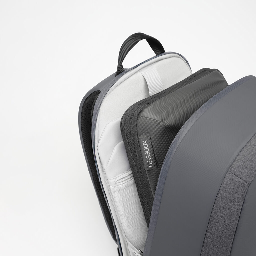 Het iconische Bobby anti-diefstal ontwerp met verborgen en RFID-beschermde vakken en verborgen ritsen is aangevuld met verbeterde functies voor de veiligheid, in een eigentijds ontwerp. Achter de zelfsluitende metalen ritstrekker, zijn je spullen nog veiliger. De lichtgewicht maar stevige constructie, met een waterafstotende buitenkant en waterdichte rits, zorgt voor bescherming tegen de elementen. Door de slimme organisatie aan de binnenkant heb je makkelijk toegang tot essentiële spullen. De toevoeging van een verborgen vakje voor het opbergen van een bluetooth tracker vergroot de veiligheid tijdens je dagelijkse avonturen. De Bobby Edge combineert een modern ontwerp met geavanceerde beveiligingsfuncties en biedt een stijlvolle en veilige reis voor de moderne ontdekkingsreiziger. De rugzak is waterafstotend en gemaakt van gerecyclede materialen. Met AWARE™ tracer die het echte gebruik van gerecyclede materialen valideert. Gerecyclede content 14% obv het totale gewicht.