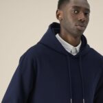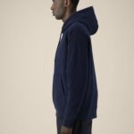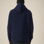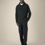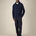 Dubbel stiksel langs mouwuiteinden en zoom