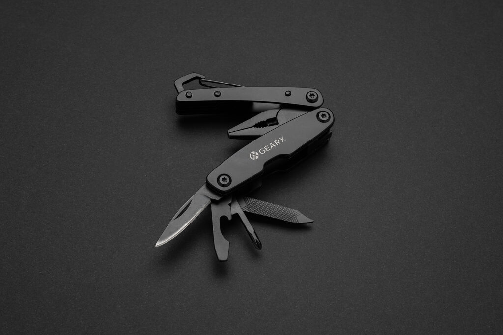 Pocket size multitool gemaakt van sterk 420 roestvrij staal. Met meerdere functies, waaronder: langneus-tang, standaardtang, draadknippers, mes, flesopener, platte schroevendraaier, Philips-schroevendraaier, vijl, vijlreiniger en karabijnhaak. Verpakt in FSC® mix verpakking.
