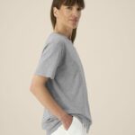 Breed dubbel stiksel langs mouwuiteinden en zoom