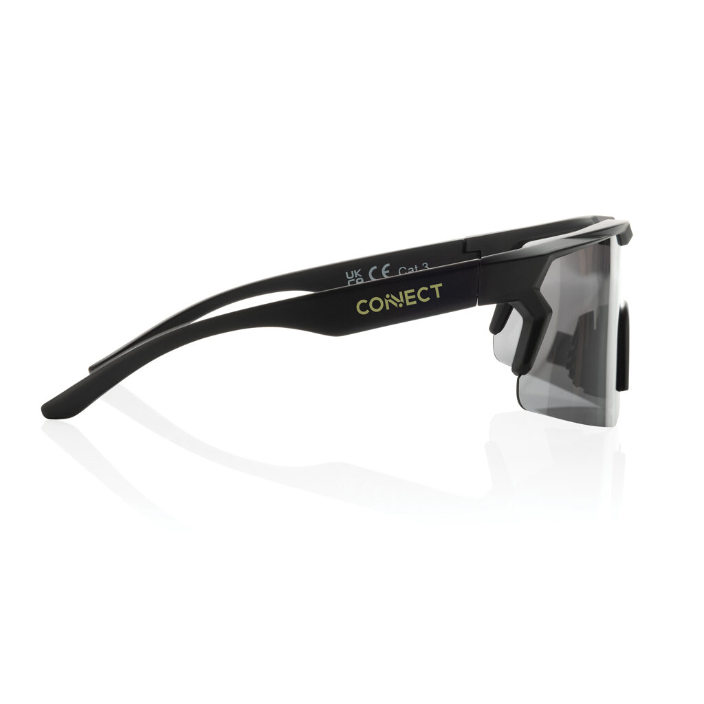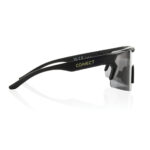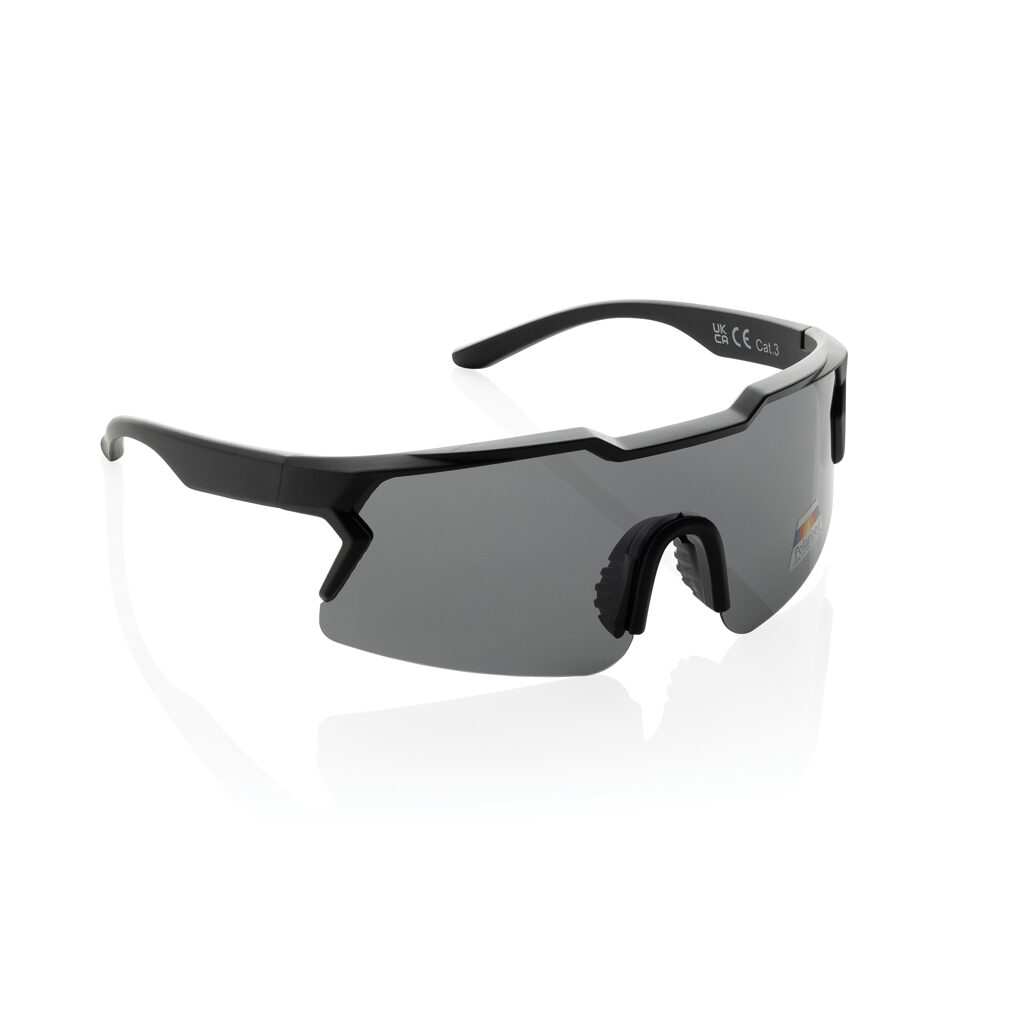 Sportieve gepolariseerde zonnebril gemaakt met RCS-gecertificeerd gerecycled PC-montuur. Totaal gerecycled materiaal: 50% gebaseerd op het totale gewicht van het artikel. De RCS-certificering garandeert een volledig gecertificeerde toeleveringsketen van de gerecyclede materialen. Inclusief gerecycled RPET hoesje om de bril in op te bergen. De lenzen zijn gepolariseerd waardoor weerkaatsend zonlicht wordt geëlimineerd, ideaal voor sport en buitenactiviteiten. Voldoet aan EN ISO 12312-1, UV 400 en CAT 3. Verpakt in een FSC® geschenkverpakking.